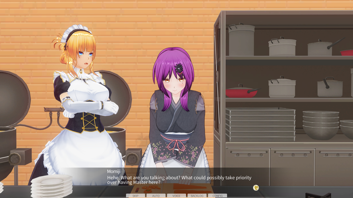 In Yuri and Harem yotogi, dialogue will differ depending on which position each maid is in.