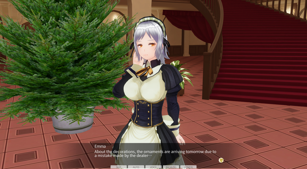 As the maids are frantically getting ready, Emma stands before the Christmas tree with a look of consternation on her face…